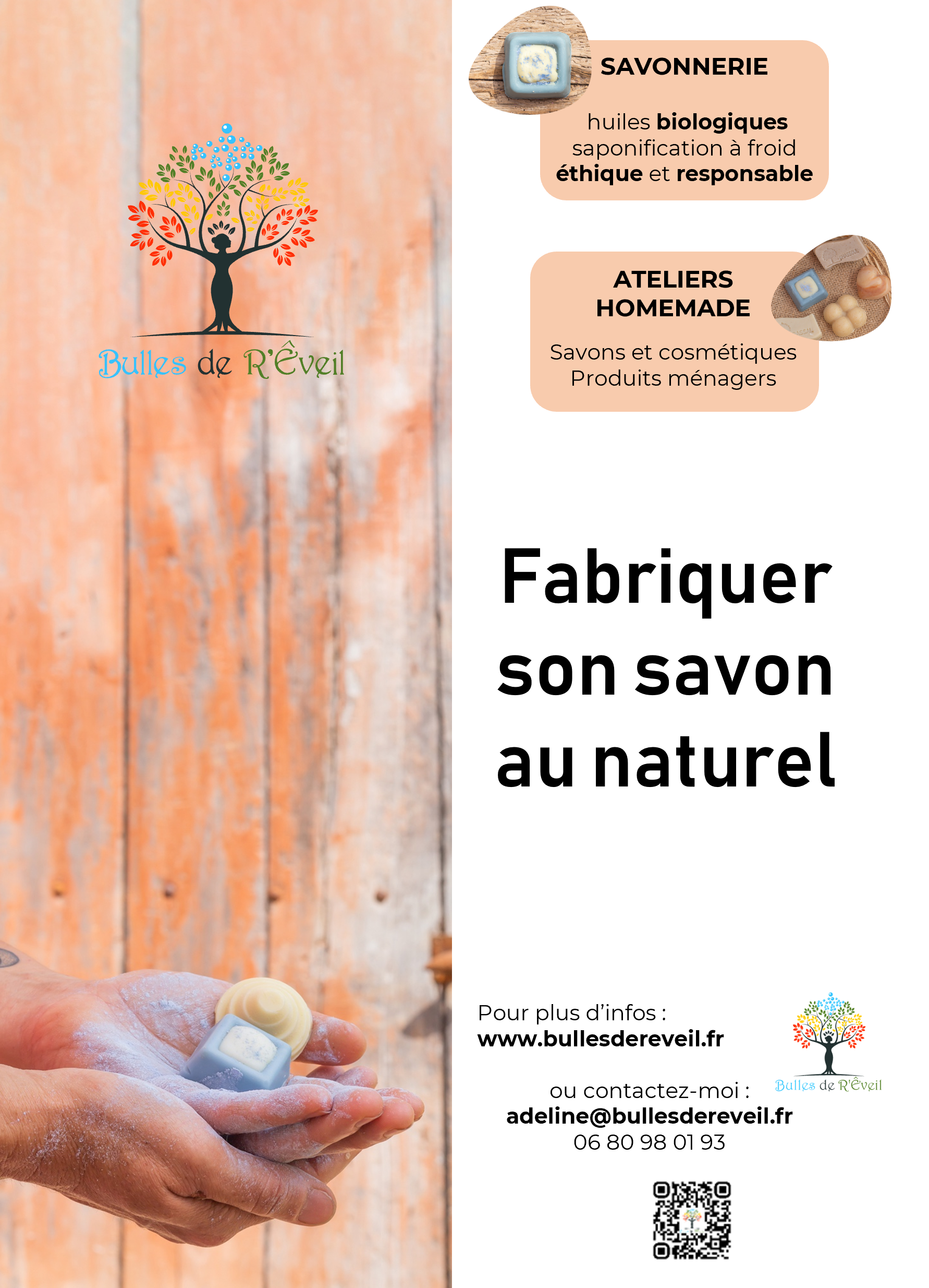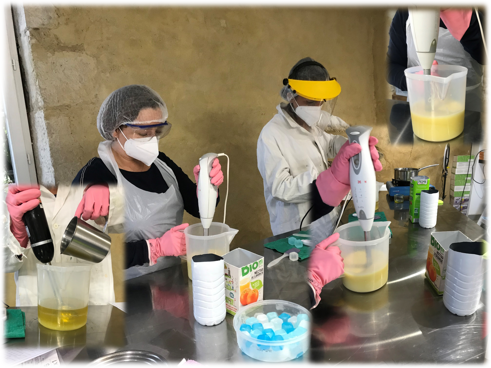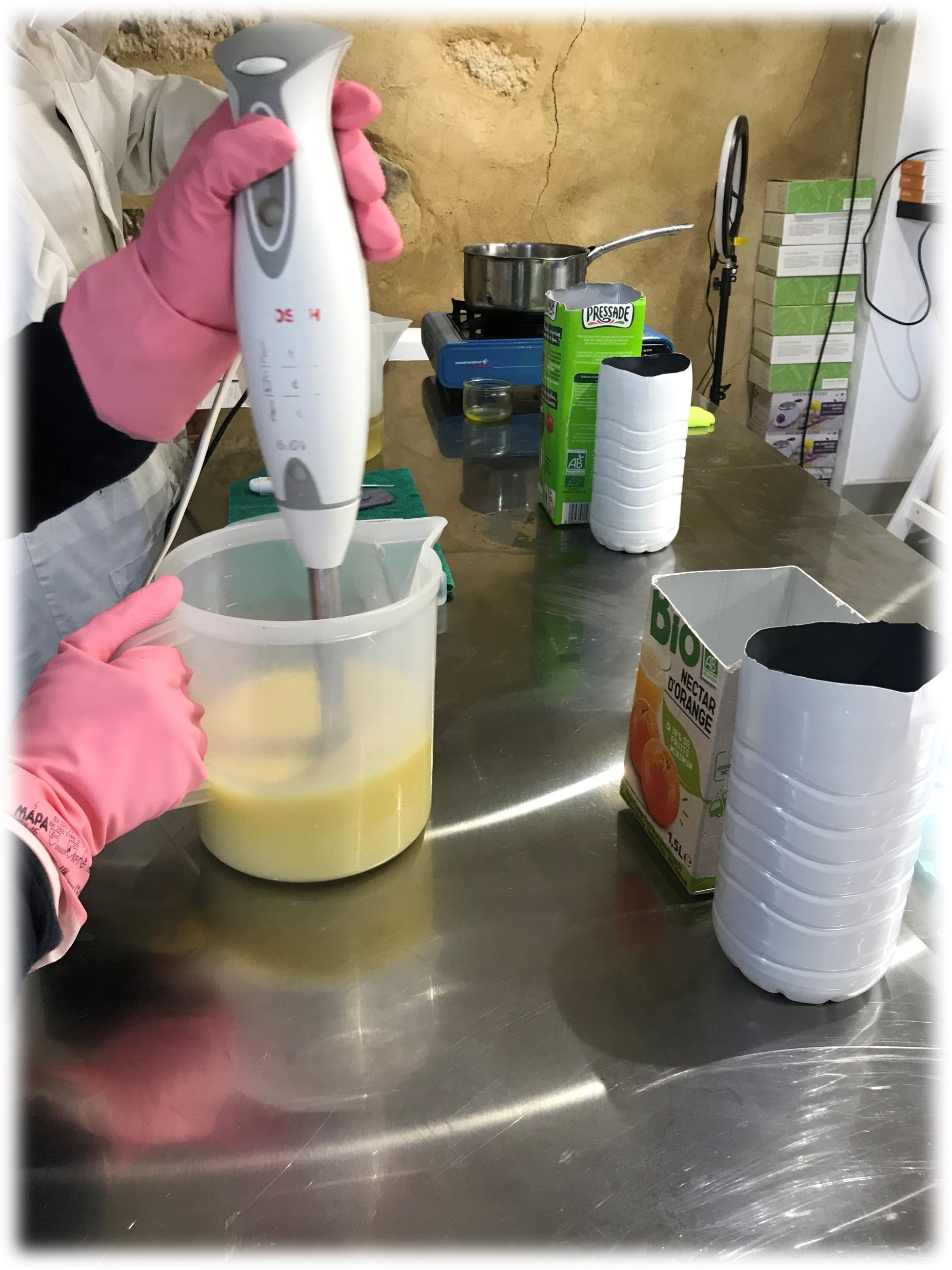• Vous repartez avec votre pain de savon à démouler puis découper et les documents nécessaires pour refaire les savons chez vous